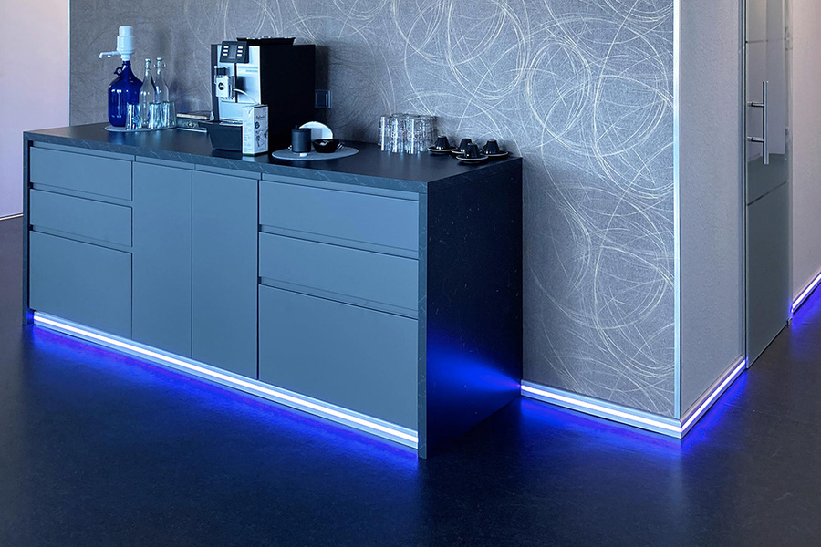 Lineares Licht ermöglicht eine vielseitige und moderne Beleuchtungsgestaltung. LED-Stripes in Kombination mit hochwertigen Alu-Profilen bieten flexible und passgenaue Lösungen für architektonische Akzentbeleuchtung, indirekte Raumbeleuchtung und funktionale Lichtinstallationen.